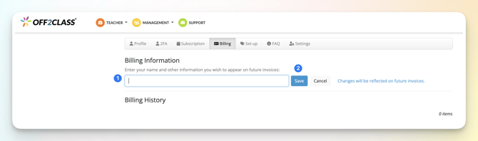 - Log in to Off2Class and go to Account in the drop-down menu under your name in the top right.
