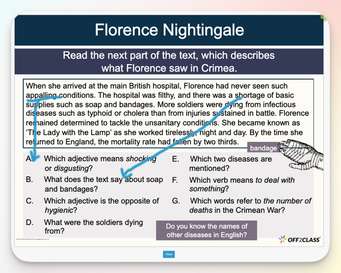 Students access the Context Menu by highlighting and right-clicking any word to open up another level of interactivity.