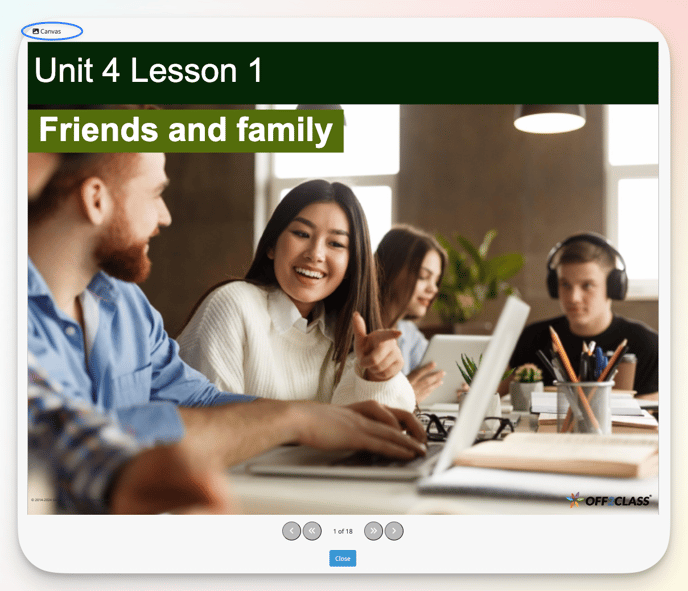 During a live lesson you (the teacher) are in control of opening and closing the canvas however, students can access the canvas when reviewing their lesson slides