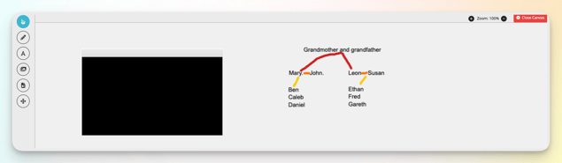 - Pan the canvas: the canvas is unlimited; pan to see other parts of the screen