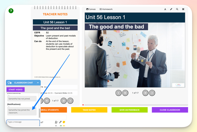Having your students work on their own devices means they can interact with you during the lessons - share in the gap-fill activities and write on the slides or canvas, making the lesson more enjoyable.